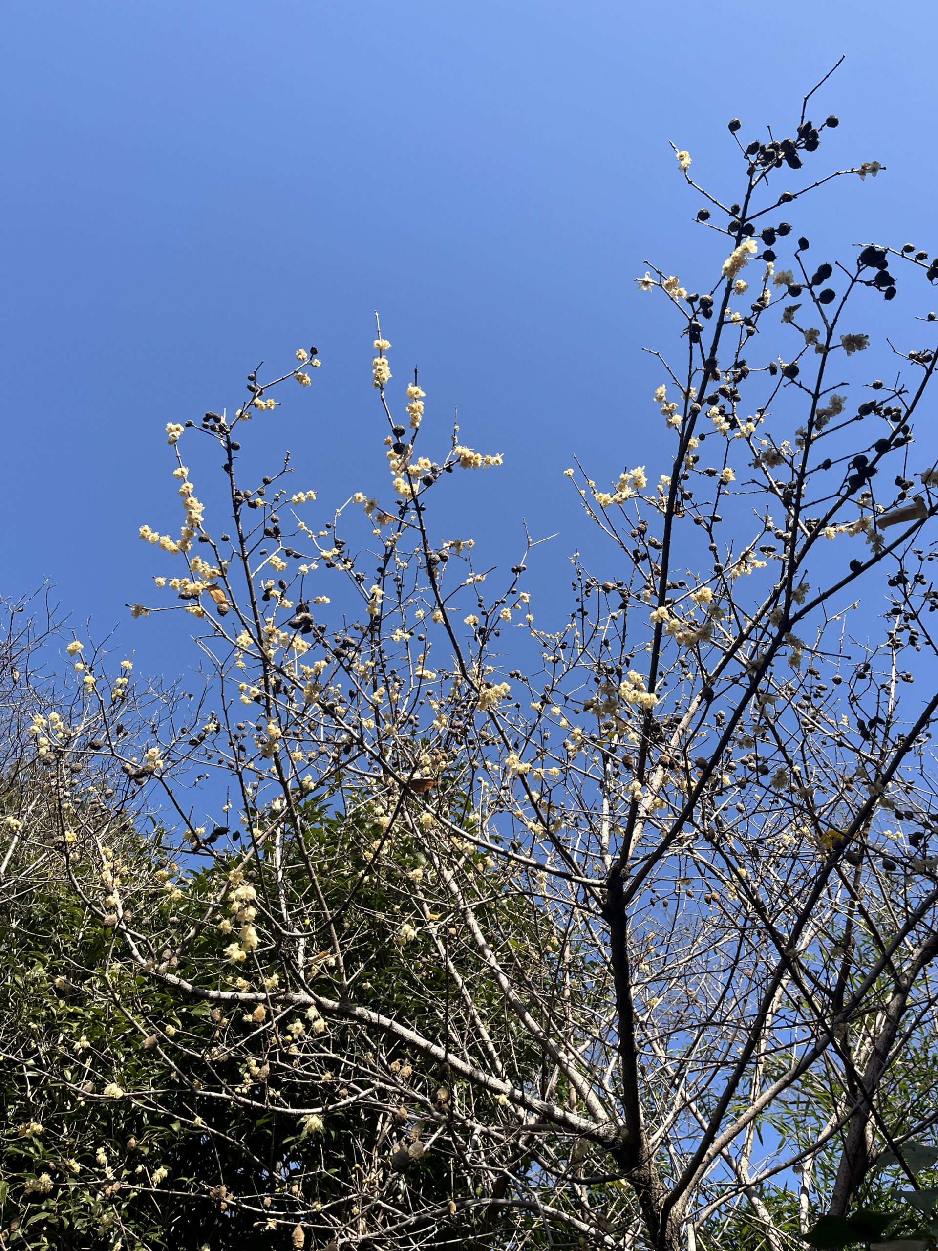 森の家前にあるロウバイも黄色いお花が青空に映えていて美しいです🌼
