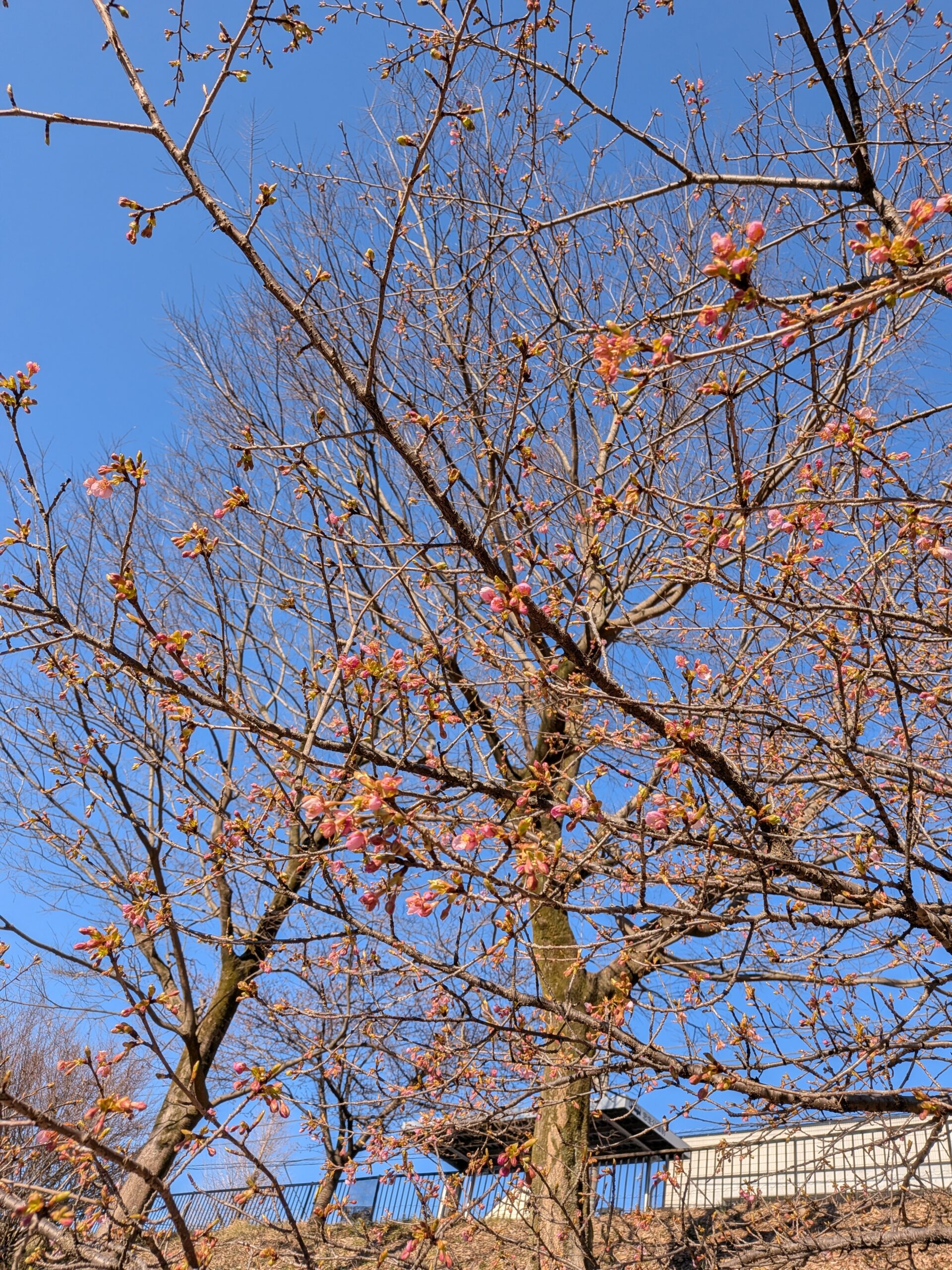 日当たりの良いソフトボール場の河津さくら🌸も咲き始めました。