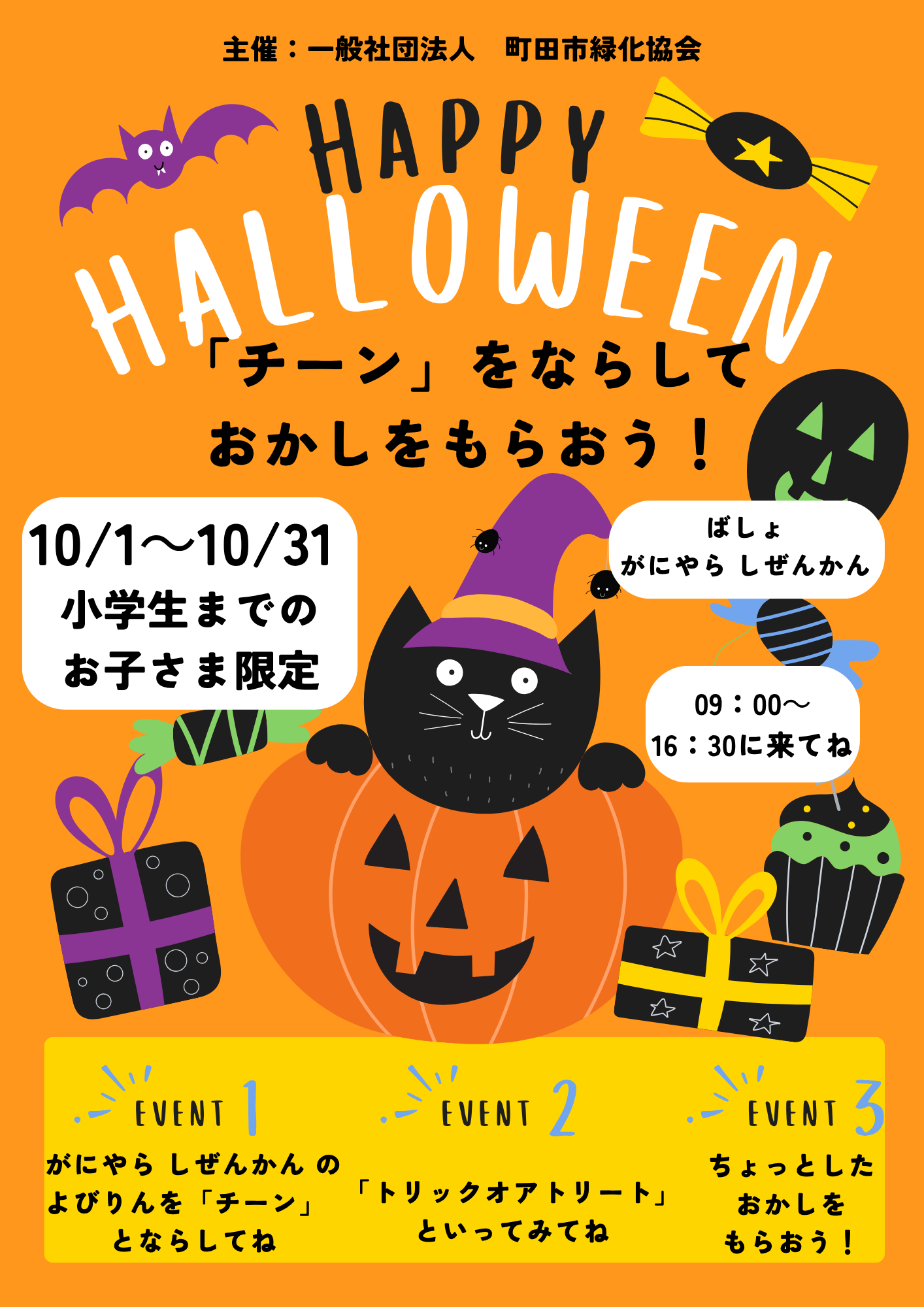 本日から10/31までの間「トリック・オア・トリート」というとお菓子がもらえるよ🍬