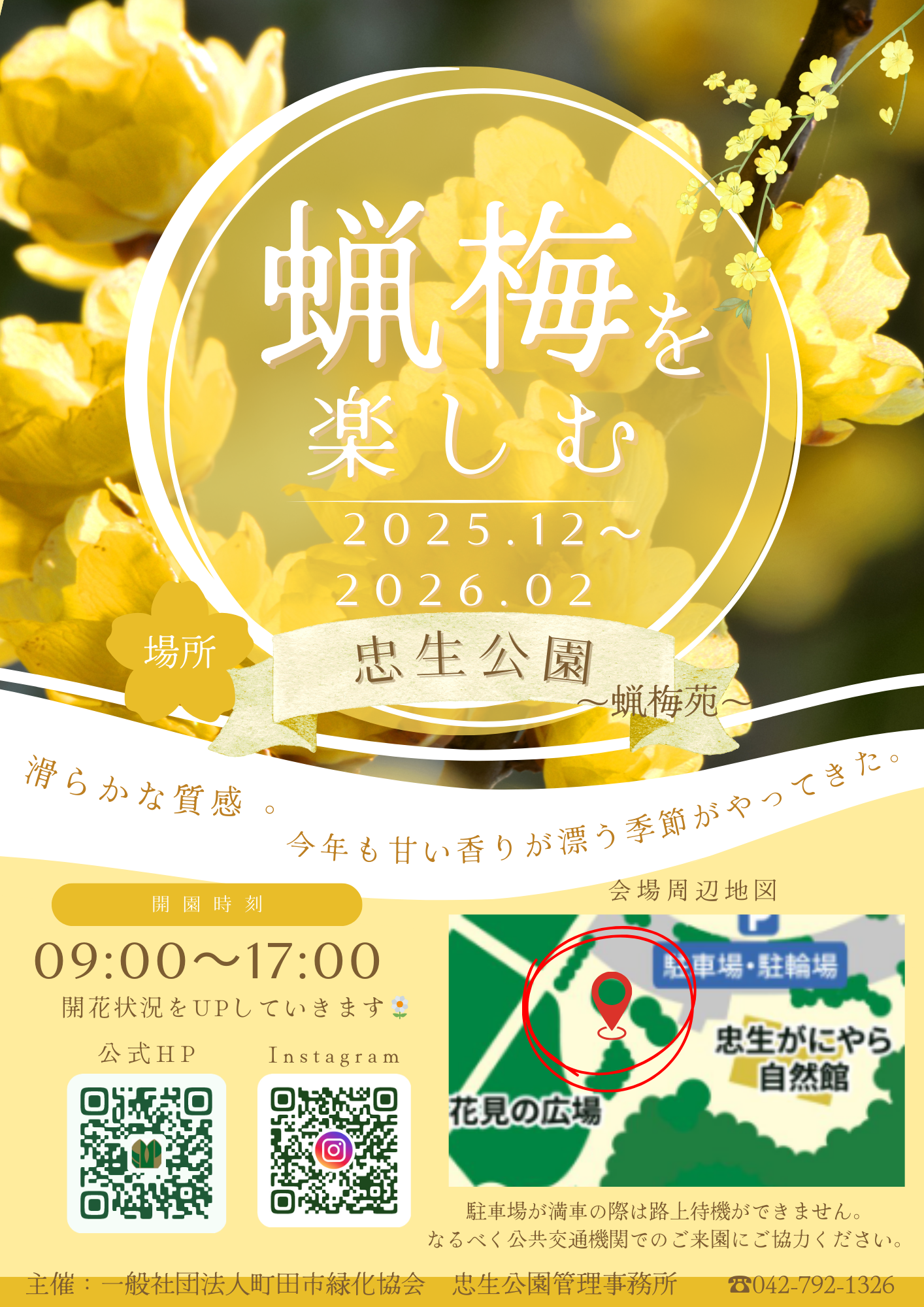 今年も忠生公園の「蝋梅苑」にて冬のお花を楽しみませんか?