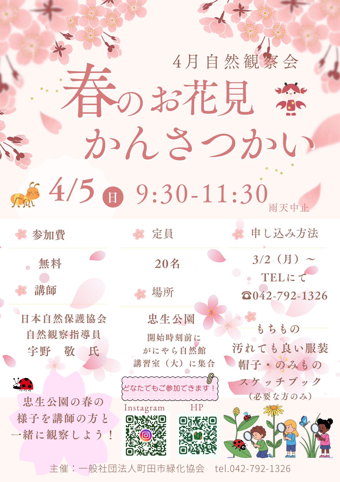 4/5【自然観察会】春のお花見かんさつかい≪申し込みは3/2~≫