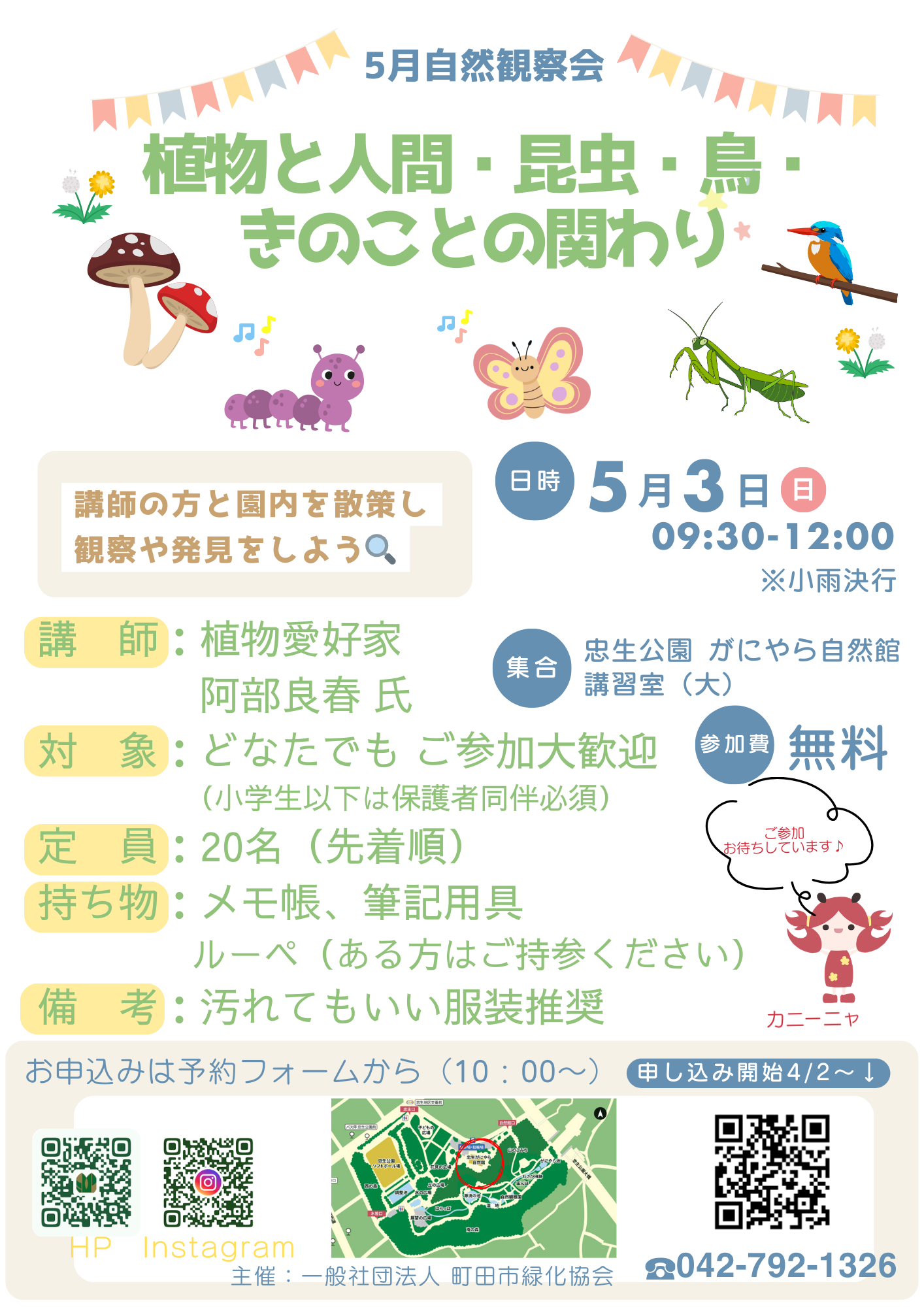 5/3【自然観察会】植物と人間・昆虫・鳥・きのこ との関わり≪申し込みは4/2~≫