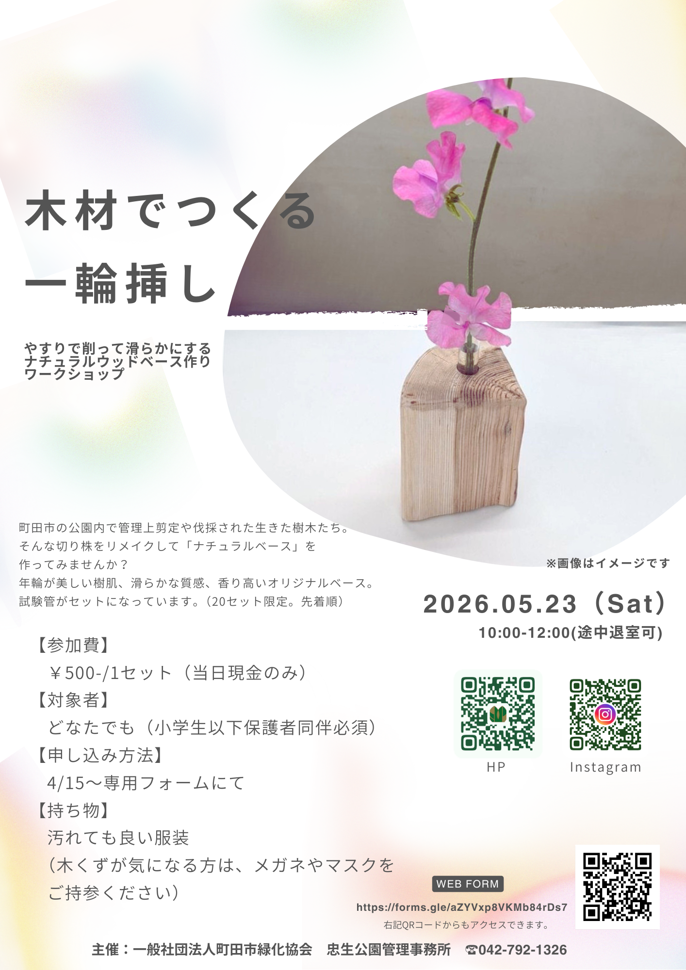 5/23木材でつくる一輪挿し≪お申込みは4/15~≫