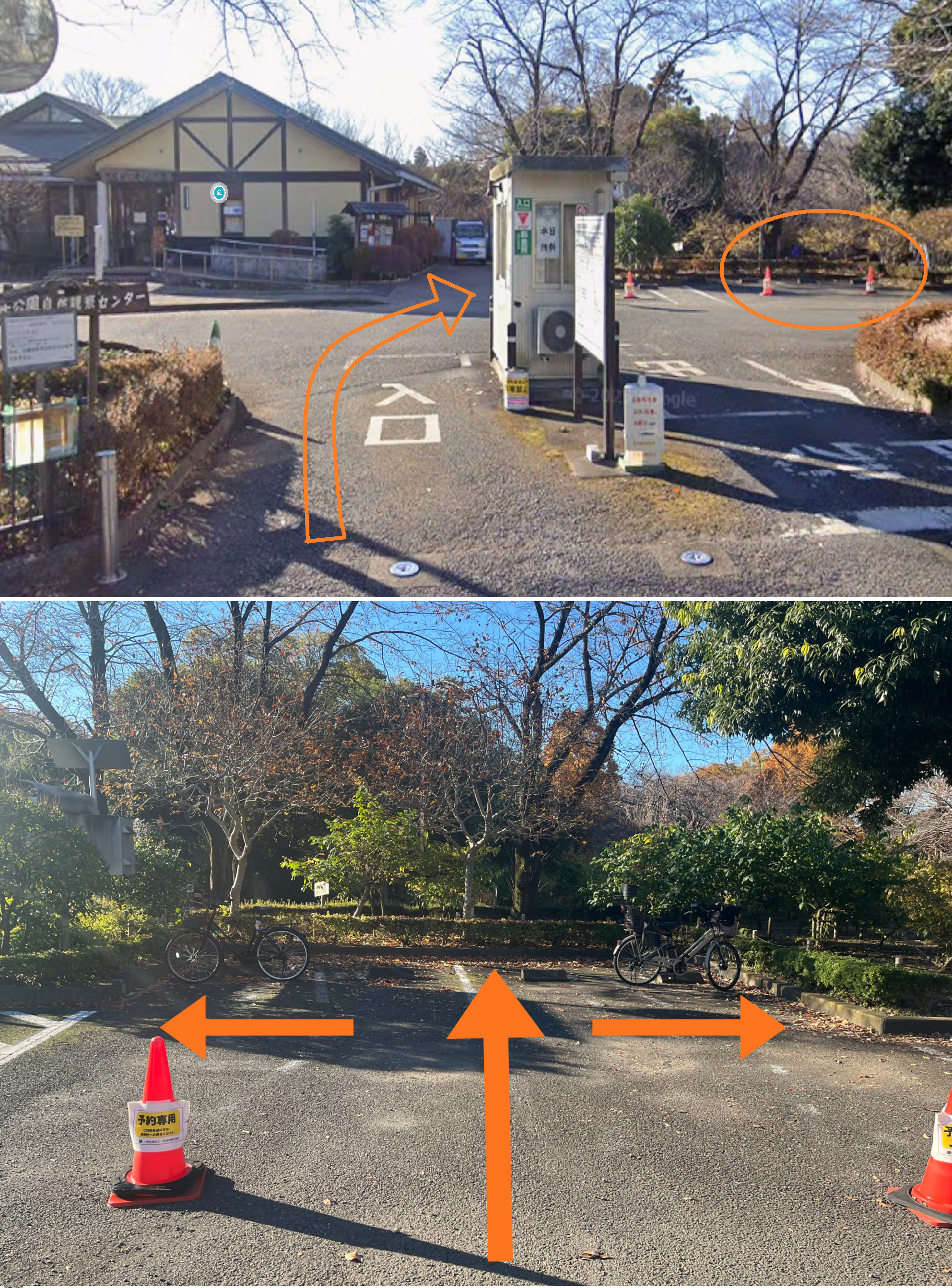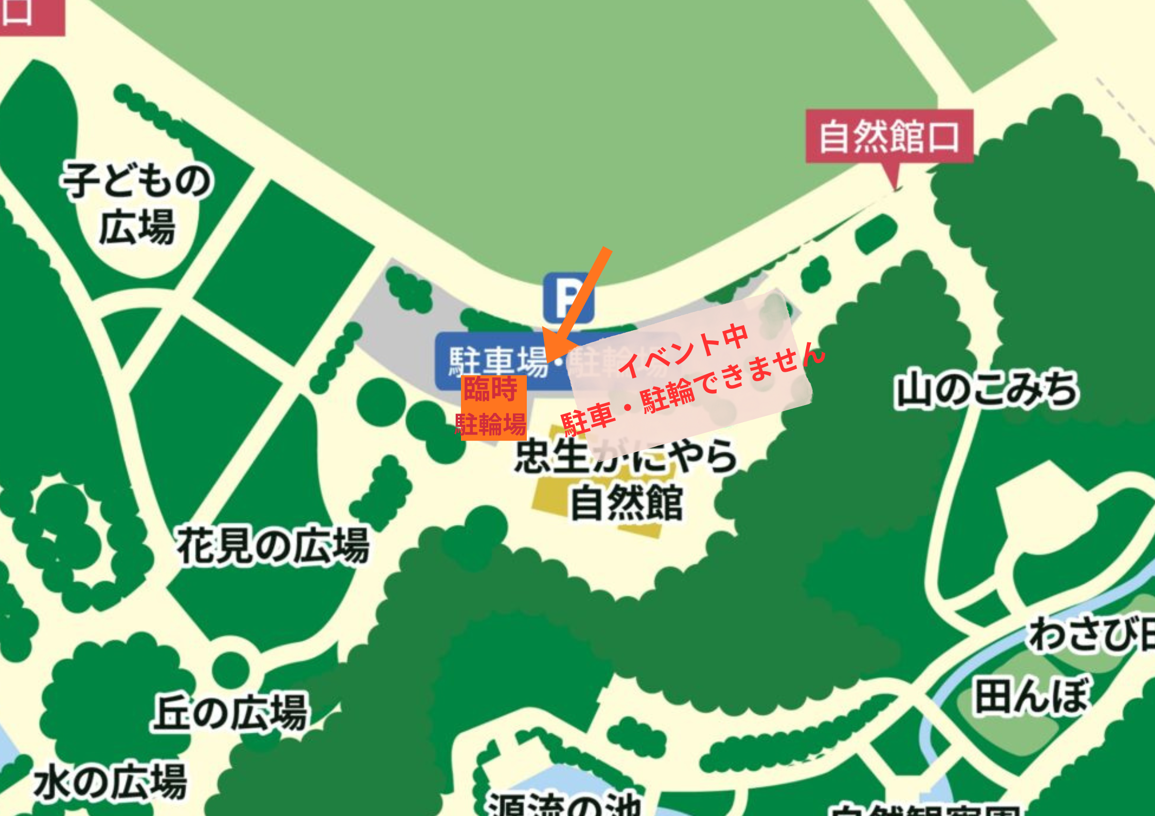 「マイクロバス駐車スペース」が臨時駐輪場になります。