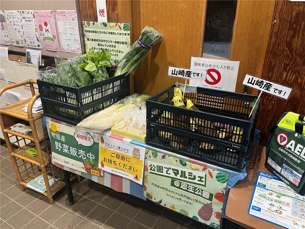 本日より、がにやら自然館にて【公園でマルシェ】野菜、タケノコ販売いたします♪