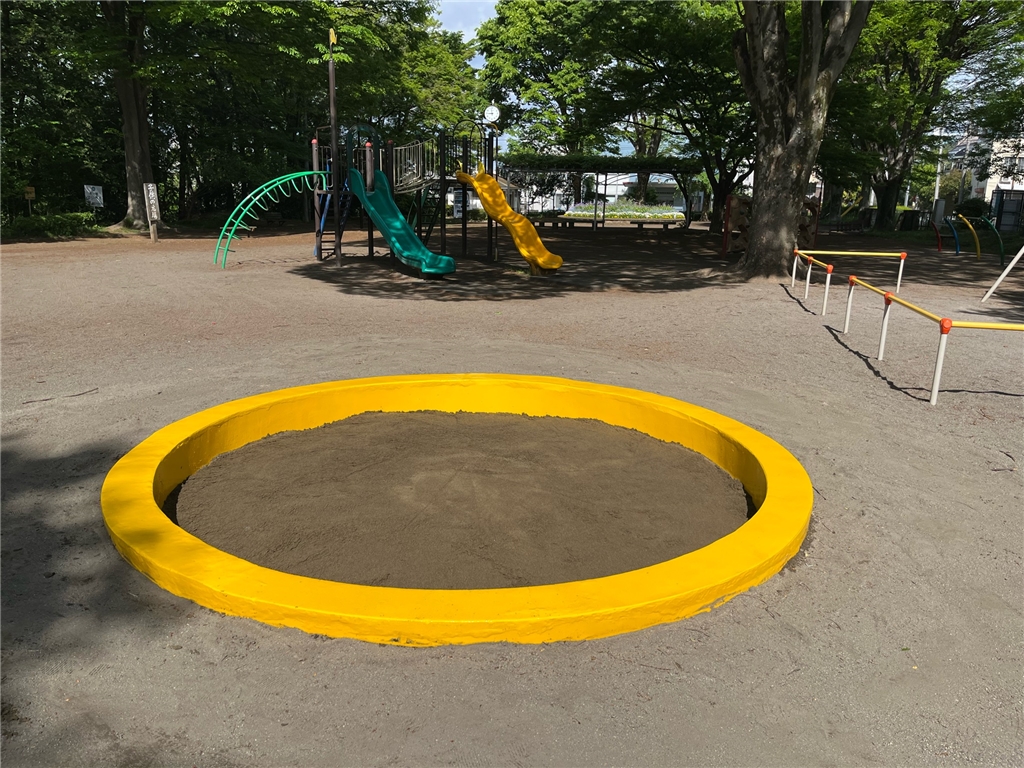子どもの広場にある砂場の改修工事ですが無事に完了いたしました。